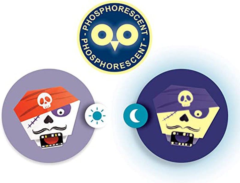 Набор оригами Chills Origami - Djeco - Ремесла и создание Страшная поделка! Когда-то сложенные персонажи появляются в темноте благодаря фосфоресцирующим чернилам, они выглядят так, как будто они были взяты из дома с привидениями! Занятие, которое нужно сделать одному или поделиться с друзьями. 24 иллюстрированных листа для сложения 20 x 20 см (8 моделей x 3) и 1 пояснительная пошаговая брошюра в цвете Возраст: 5-8 лет