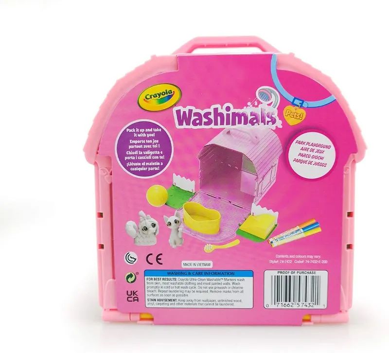 Игрушки Washimals — это очаровательные питомцы, которых дети могут снова и снова украшать смываемыми маркерами Crayola. От горошка и сердечек до разноцветной шерсти — дети могут создавать забавные рисунки для своих Washimals, а затем мыть их водой, чтобы начать украшать их заново. Собаки, кошки, кролики… Заведите всех питомцев Washimals и соберите полную коллекцию! Помимо Washimals, в набор входят несколько смываемых маркеров для украшения питомцев, щетка и контейнер для их мытья.